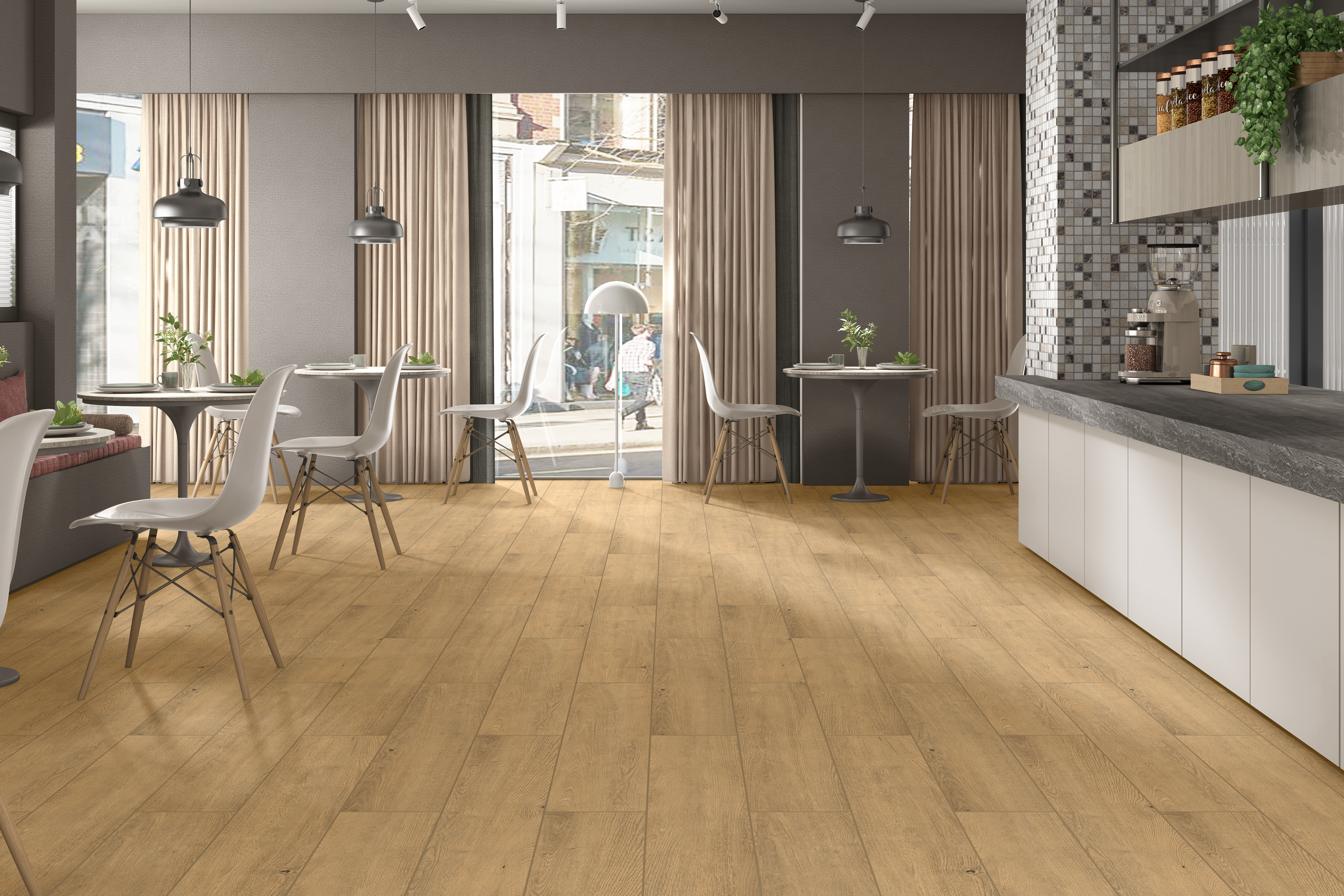 Натуральный соломенный оттенок керамогранита Norway Almond способен окутать пространство теплотой и уютом. При этом акцент сделан на точное повторение древесного узора и фактуру. Современные технологии обеспечивают настолько качественную проработку текстуры керамогранита Norway Almond, что даже при соприкосновении он напоминает паркет.