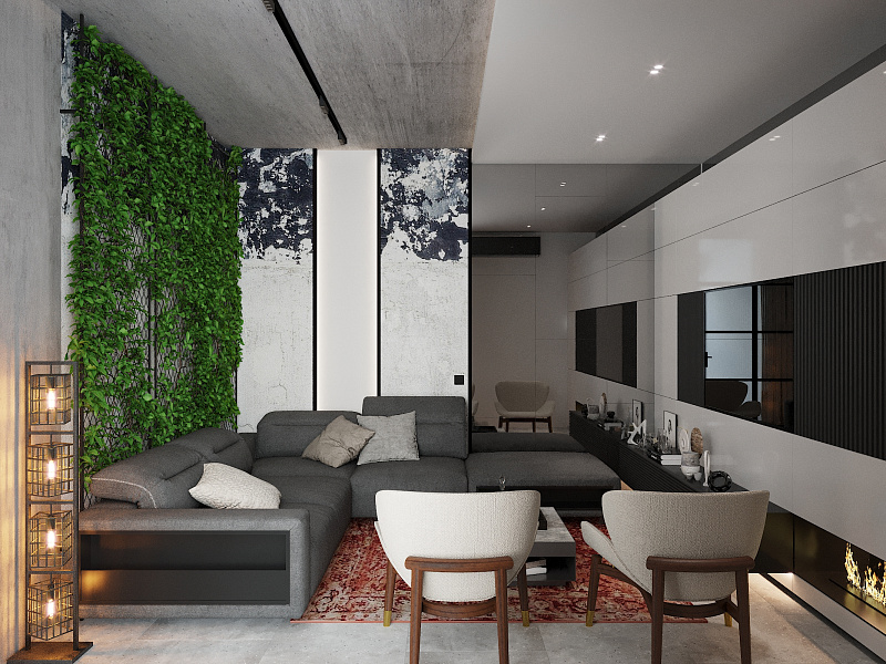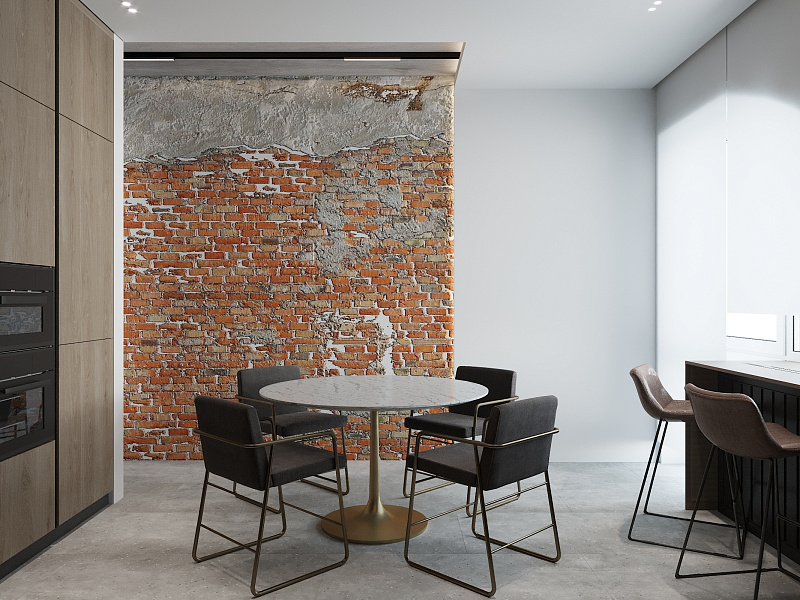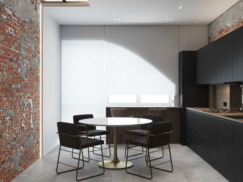 Дизайн-проект кухни-гостиной в стиле ЛОФТ для молодой пары.
