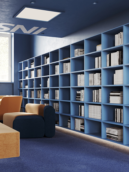 Расположенная на главном проспекте города, в окружении университета, школ и спортивных секций, библиотека становится естественным продолжением городской жизни. Ее двери открыты для всех: для студентов, ищущих вдохновение, для школьников, открывающих мир знаний, для творческих личностей и профессионалов, нуждающихся в уютном уголке для работы.