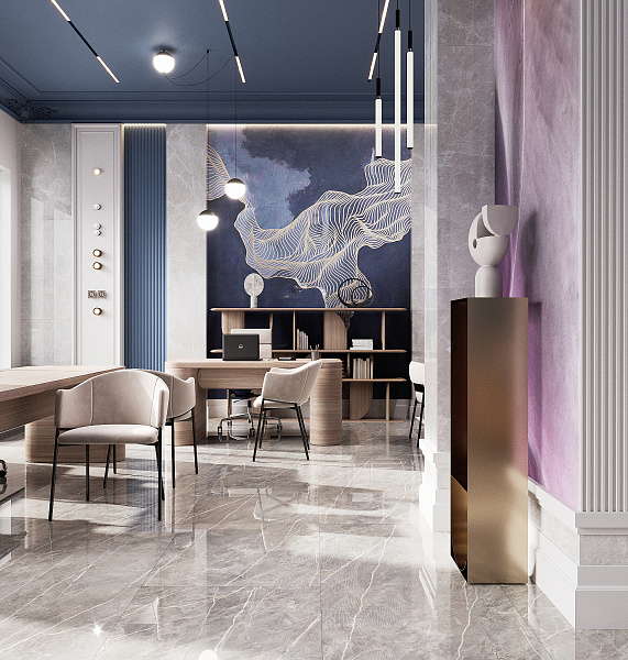 Основная задача, которая стояла, — разместить максимальное количество декора, лепнины, освещения, фресок, керамогранита, но при этом сохранить воздух, не перегрузив его. Создать стильное, яркое, запоминающееся пространство для теплых встреч, общения и новых знакомств. Пространство, которое хочется рассматривать и возвращаться вновь.