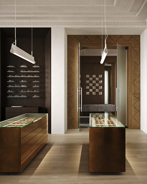 В зонах, предназначенных для ухода, акцент сделан на тепло и комфорт. Здесь на полу уложен керамогранит Grove Golden. Его теплые золотистые тона, имитирующие фактуру дерева, добавляют интерьеру изысканности и создают расслабляющую атмосферу.