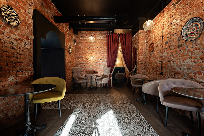 Реализованный проект кафе восточной кухни.
