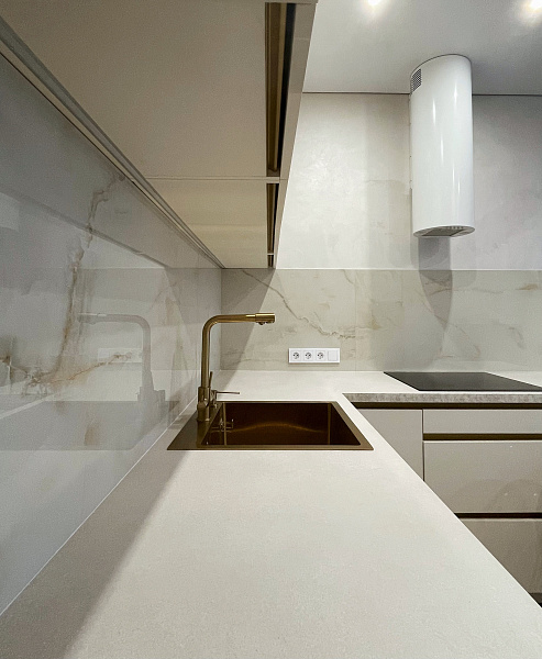 Основой интерьера стал, выбранный нами, керамогранит ENNFACE Onice Avorio 600х1200мм Gloss