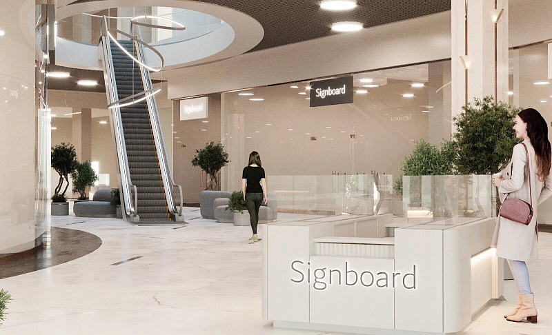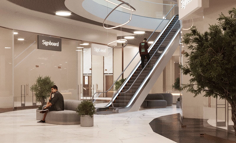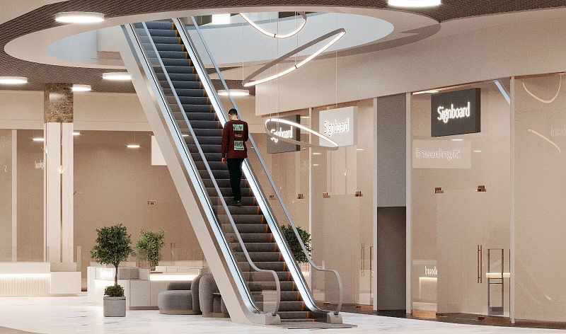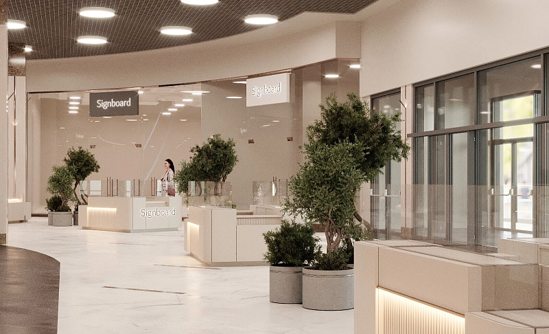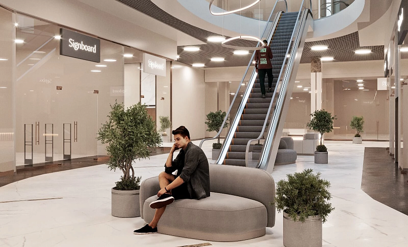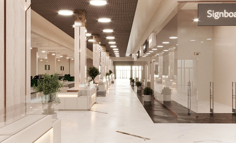 В проекте представлен дизайн-проект ТЦ в Воронеже, в качестве напольного покрытия в помещении использовали керамогранит ENNFACE Oxido copper 600х1200мм Carving.