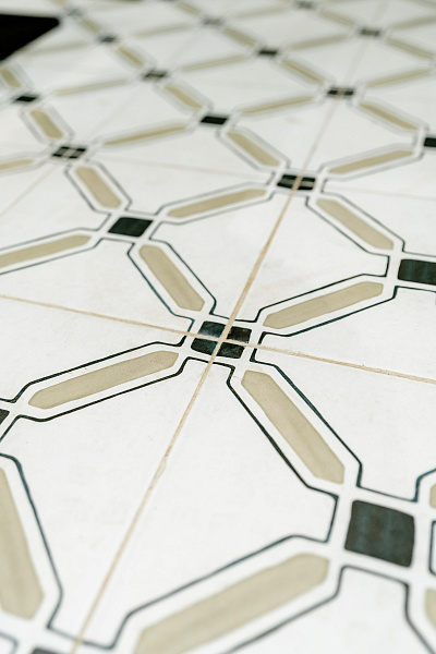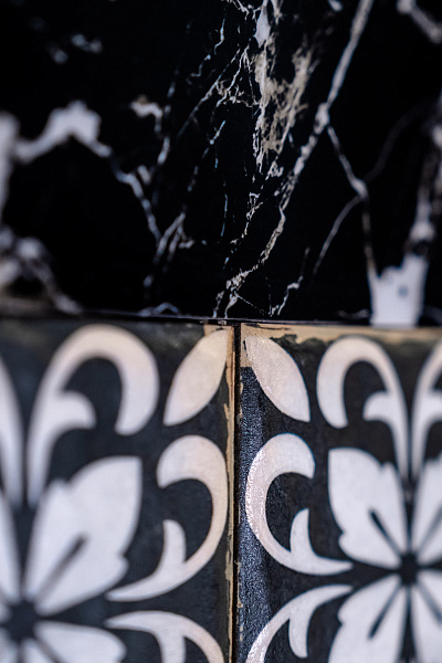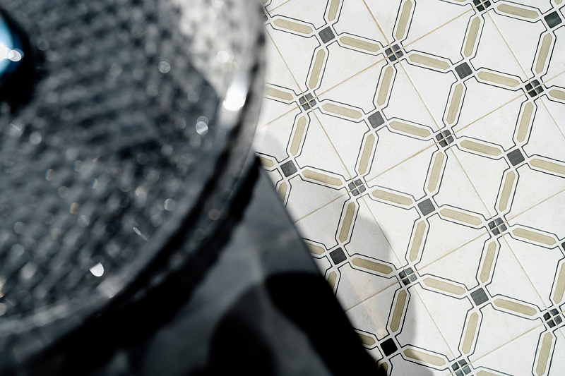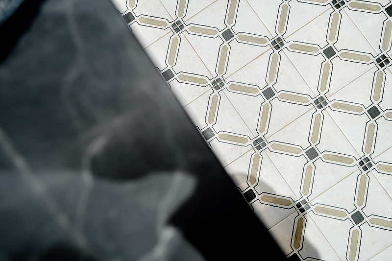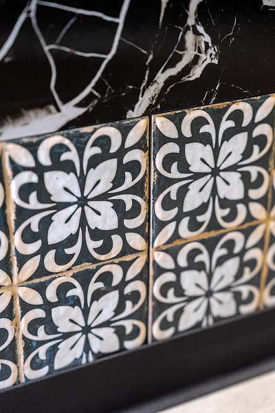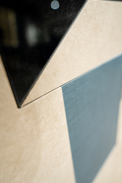 Необычным решением для нижней части стены стал мелкоформатный керамогранит - Morocco Rich 200х200х8 Matt.