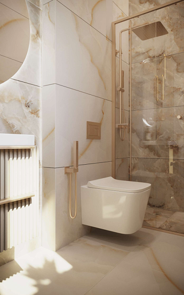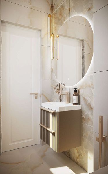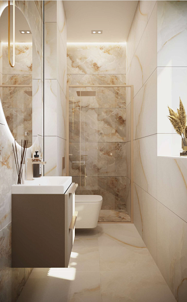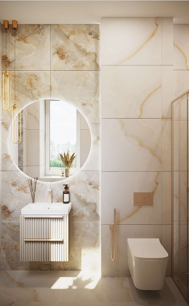 В качестве основной плитки выбрана коллекция: Onice Avorio 600х1200мм GLOSSY.