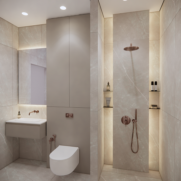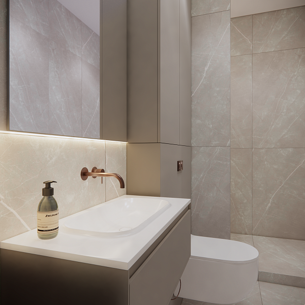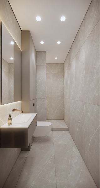 В своём проекте дизайнер использовала плитку Alaska Grey 600x1200.