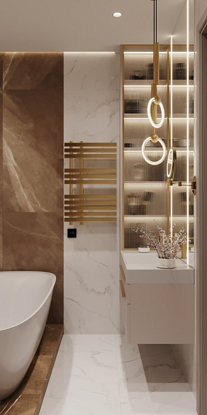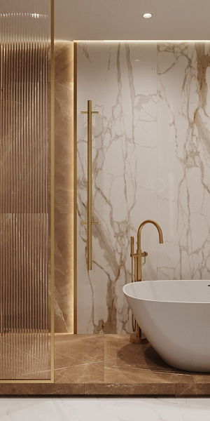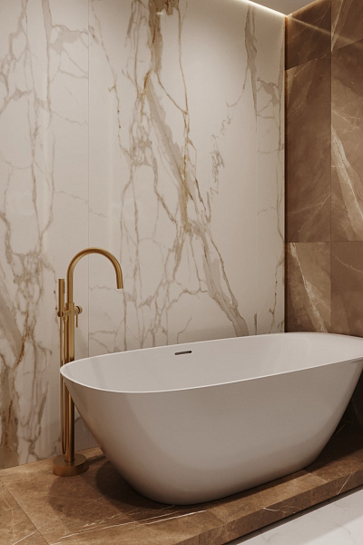 В проекте использован фоновый керамогранит под мрамор - ENNFACE Statuario Carmel 600х1200мм Matt.