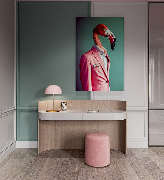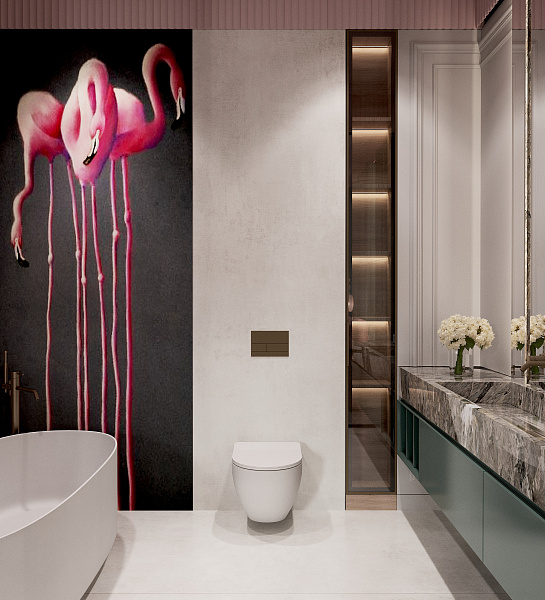 "Тропический фламинго". Концептуальный проект спальни и ванной комнаты.